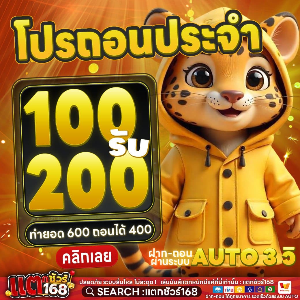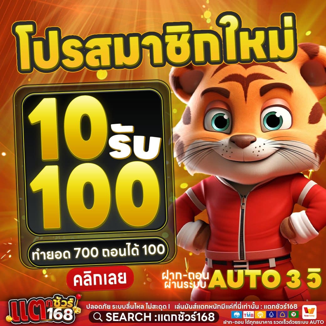 ฝาก10รับ100 สมาชิกใหม่ ต้อนรับสมาชิกใหม่กับโปรโมชั่นสุดพิเศษ ฝาก 10 รับ 100 จาก สล็อตแตกชัวร์168! โอกาสทองสำหรับผู้เล่นทุนน้อย ที่ต้องการสัมผัสประสบการณ์การเล่นเกมสล็อตออนไลน์คุณภาพสูง ด้วยเงินทุนเพียงเล็กน้อย คุณก็สามารถรับเครดิตเพิ่มอีก 100 บาท เพื่อเพิ่มโอกาสในการทำกำไร และสนุกไปกับเกมสล็อตหลากหลายเกม กราฟิกสวยงาม และระบบการเงินที่ปลอดภัย อย่าพลาดโอกาสดีๆ แบบนี้ สมัครสมาชิกวันนี้ และรับโปรโมชั่นสุดคุ้ม ฝาก 10 รับ 100 ไปสนุกกับเกมสล็อตได้เลย! แต่โปรดอย่าลืมตรวจสอบเงื่อนไขและข้อกำหนดของโปรโมชั่นก่อนเข้าร่วมด้วยนะครับ